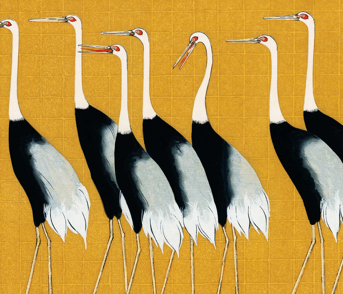 • Watercolor painting of three blue cranes titled Blue Japanese Crane by Ohara Koson and Anonymous poster, framed and displayed in home decor Watercolor painting of three blue cranes titled Blue Japanese Crane by Ohara Koson and Anonymous poster, with black aluminium frame on white background